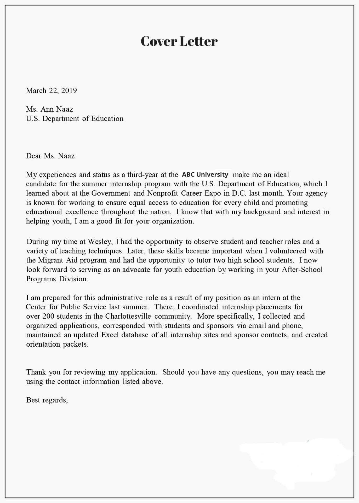 SAMPLE COVER LETTERS